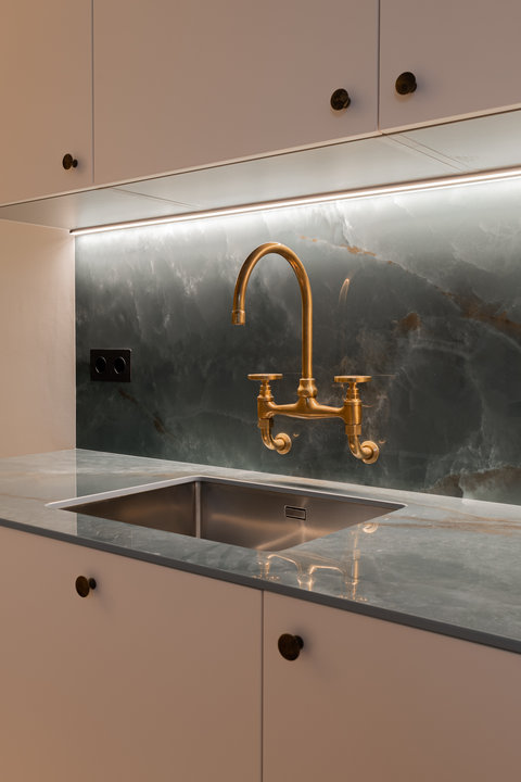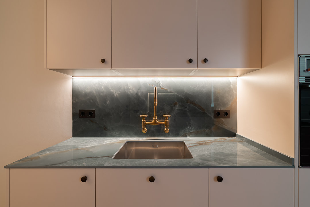 Un proyecto inspirado en el mar y la arena, en la esencia de Formentera, en la nostalgia de un barco y un tren antiguos. Una propuesta que mezcla la frescura del verde con el carácter de metales negros, cobres y bronces, creada para un cliente apasionado por el Mediterráneo y la ingeniería.