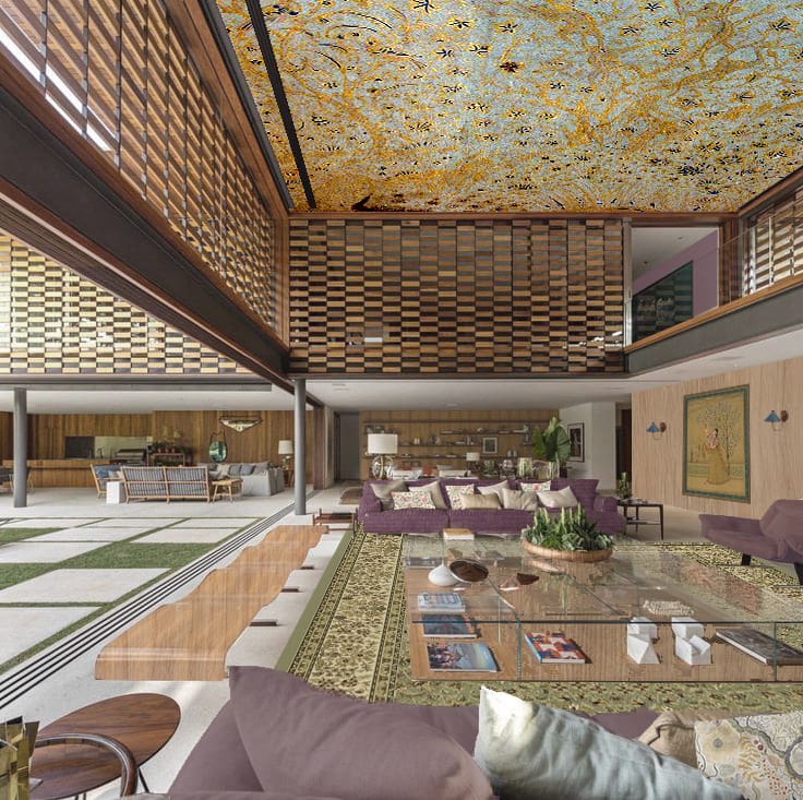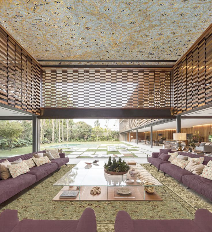 El interiorismo, por su parte, combina los colores de la naturaleza con sutiles toques dorados en el techo, evocando la luz y la armonía de un paraíso terrenal.